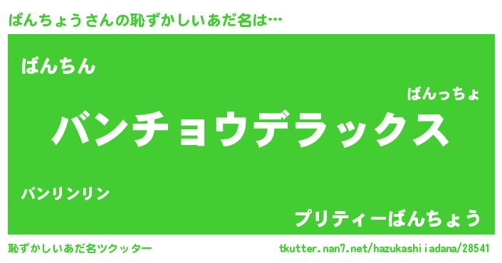 | 男性向けラノベタイトル風あだ名 | 『魔弾の王とばんちょう』 |
