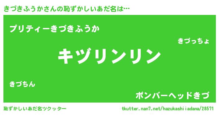| ポケモン風あだ名 | 『ヒキヅキフウカ』『キヅチュウ』 |