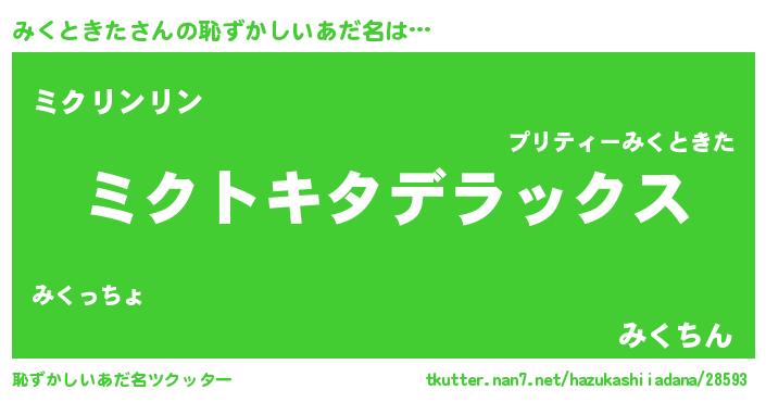 | 意味不明あだ名 | 『自称みくときた』『永久保存みくときた』 |