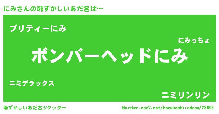 | ヘコむあだ名 | 『にみもー』『にみっ子』『なまこ酢』 |