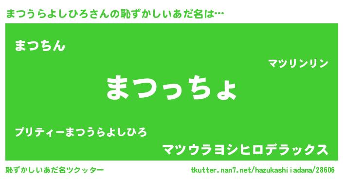 | ヘコむあだ名 | 『酢こんぶ』『まつうらよしひろ(苦笑)』 |