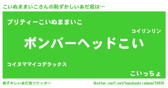 | 男性向けラノベタイトル風あだ名 | 『こいぬままいこに滅ぼされるだけの簡単なお仕事です』 |