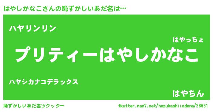 | 女子向けラノベタイトル風あだ名 | 『シンデレラはやしかなこ家の靴箱館』 |