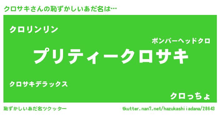 | ヒーロー風カッコイイあだ名 | 『仮面クロダー』『スーパークロサキ』 |