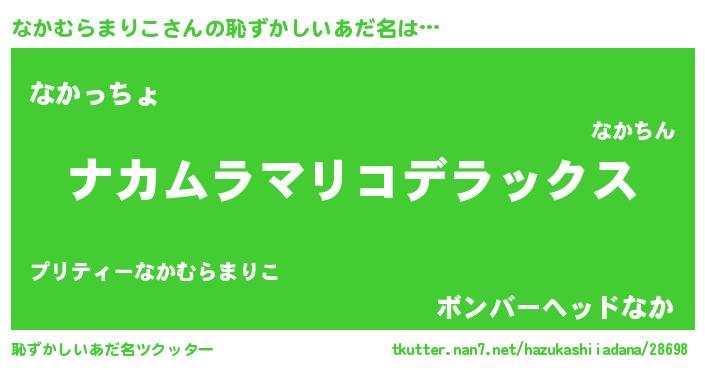 | 男性向けラノベタイトル風あだ名 | 『Re:なかむらまりこから始める異世界生活』 |