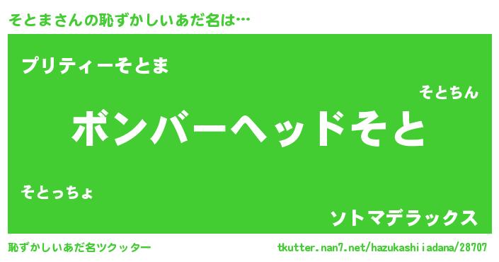 | 意味不明あだ名 | 『眠気覚ましガムそとま味』『自称そとま』 |