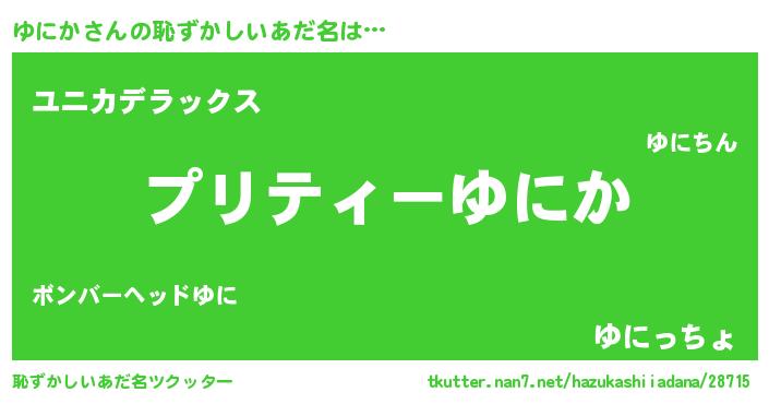 | 意味不明あだ名 | 『ペロリンゆにか』『自称ゆにか』 |