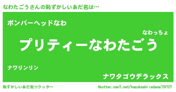 | ヒーロー風カッコイイあだ名 | 『スーパーナワタゴウ』『仮面ナワダー』 |