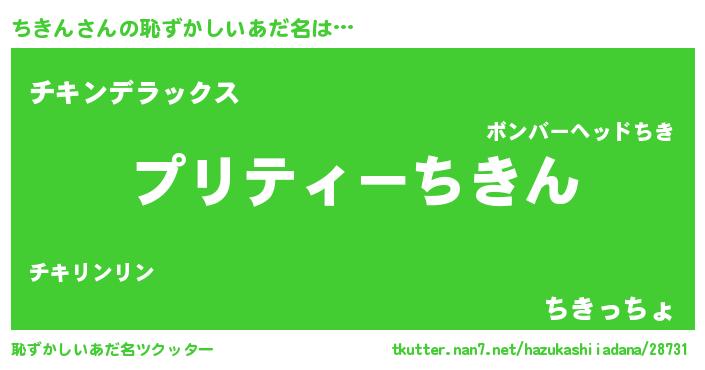 | ヘコむあだ名 | 『ちきにー』『なまこ酢』『ちきを』 |