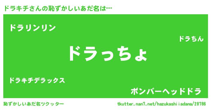 | ヒーロー風カッコイイあだ名 | 『仮面ドラダー』『ウルトラドラキチマン』 |