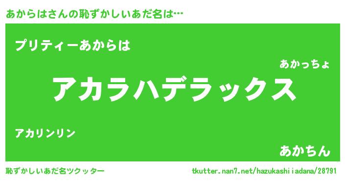 | ヘコむあだ名 | 『あかふぇ~』『あからは(小並感)』 |