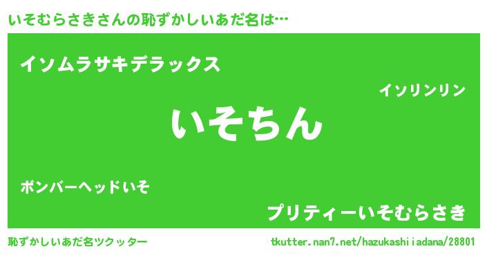 | ヘコむあだ名 | 『いそむらさき(笑)』『いそにゅー』 |
