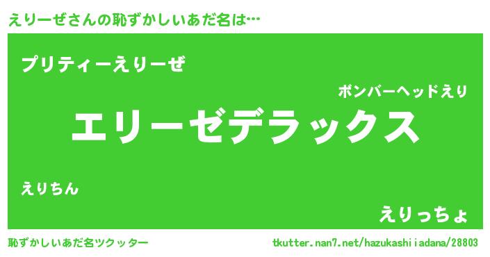 | 男性向けラノベタイトル風あだ名 | 『Re:えりーぜから始める異世界生活』 |