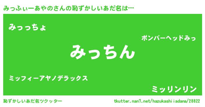 | 意味不明あだ名 | 『永久保存みっふぃーあやの』 |