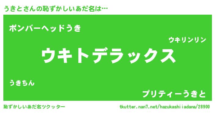 | 男性向けラノベタイトル風あだ名 | 『Re:うきとから始める異世界生活』 |