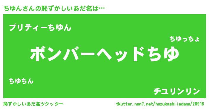 | 欧米人風あだ名 | 『ダニエルちゆん』『マイケルちゆん』 |