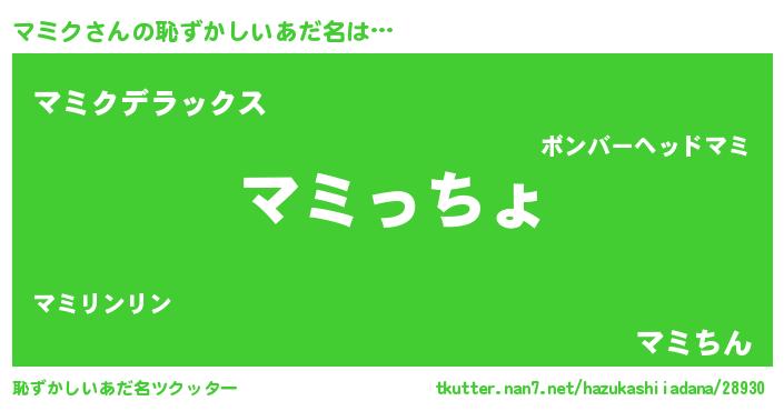 | ヘコむあだ名 | 『豆乳』『マミク(笑)』『マミお』 |
