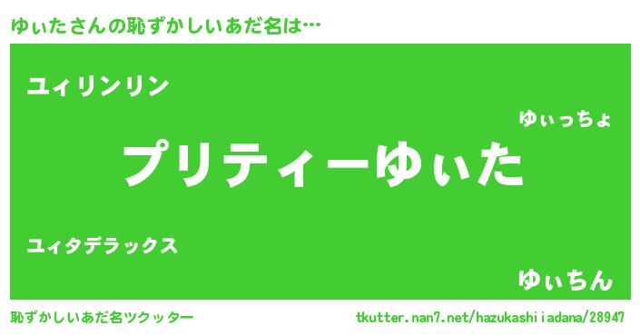 | ポケモン風あだ名 | 『ユィチュウ』『ヒユィタ』 |