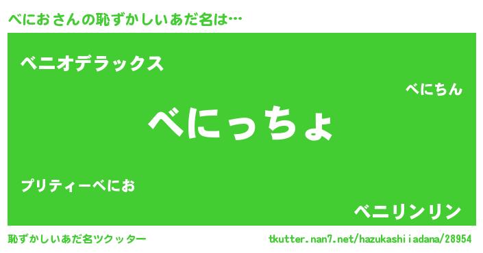 | 意味不明あだ名 | 『しいたけ科べにお属』『自称べにお』 |