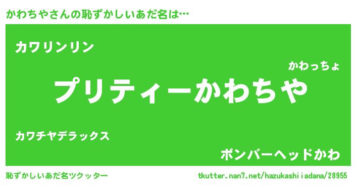 | ヒーロー風カッコイイあだ名 | 『仮面カワダー』『スーパーカワチヤ』 |