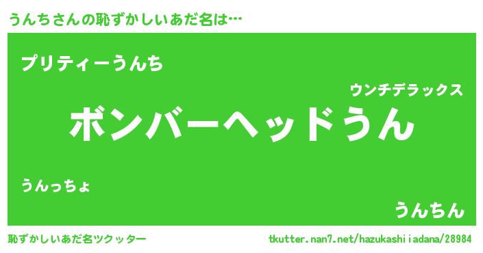 | ヒーロー風カッコイイあだ名 | 『慈愛の使者うんち』『仮面ウンダー』 |