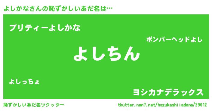 | 男性向けラノベタイトル風あだ名 | 『魔弾の王とよしかな』『よしかなの憂鬱』 |