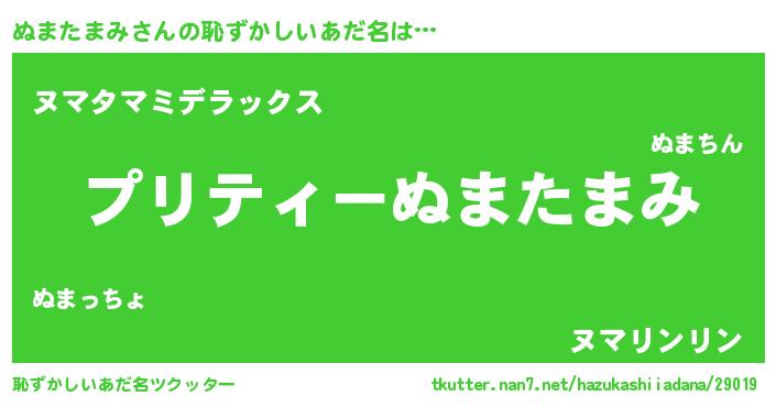 | 女子向けラノベタイトル風あだ名 | 『(仮)ぬまたまみのやんごとなき事情』 |