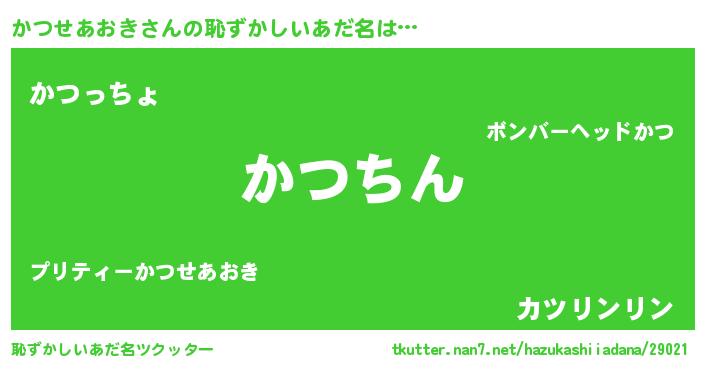 | ヘコむあだ名 | 『かつせあおき(震え声)』『豆乳』 |