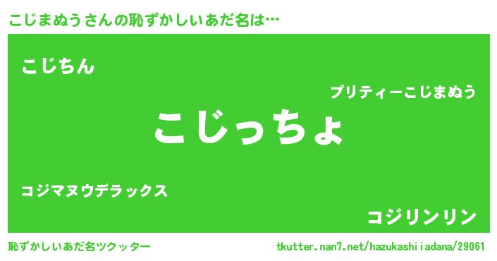 | 男性向けラノベタイトル風あだ名 | 『こじまぬう~年齢イコール彼女いない歴の魔法使い~』 |