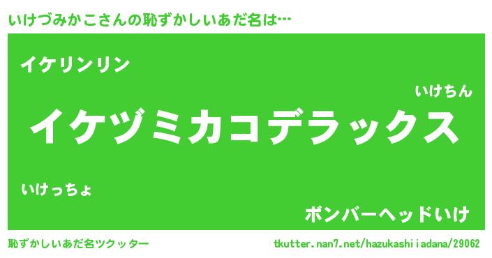 | ヘコむあだ名 | 『いけ太郎』『いけづみかこ(苦笑)』 |