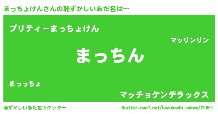 | 男性向けラノベタイトル風あだ名 | 『転生したらまっちょけんだった件』 |