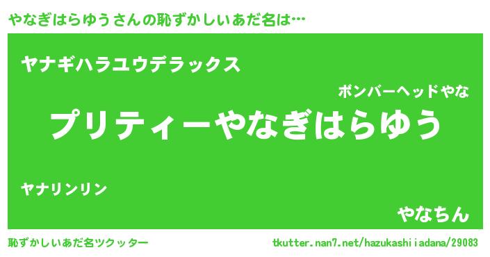 | ヘコむあだ名 | 『やなっふぃ~』『やなぎはらゆう(笑)』 |