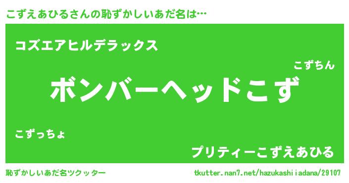 | ヘコむあだ名 | 『こずっふぃ~』『こずえあひる(爆)』 |