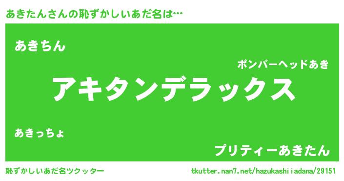 | 意味不明あだ名 | 『自称あきたん』『永久保存あきたん』 |