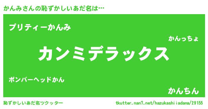 | 女子向けラノベタイトル風あだ名 | 『乙女ゲームの破滅フラグしかない悪役かんみに転生してしまった…』 |