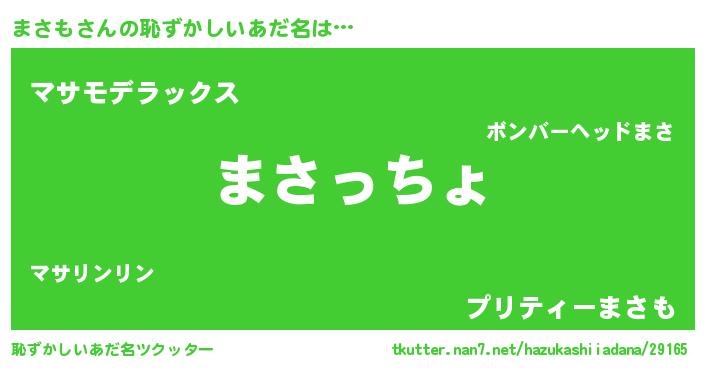 | ヘコむあだ名 | 『なまこ酢』『まさもー』『まさお』 |