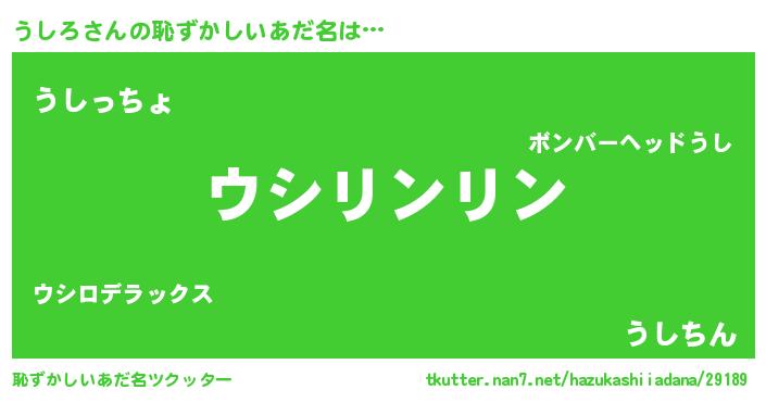 | ヘコむあだ名 | 『うしを』『豆乳』『うしろ(笑)』 |