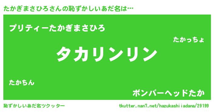 | ポケモン風あだ名 | 『ヒタカギマサヒロ』『タカゴンZ』 |