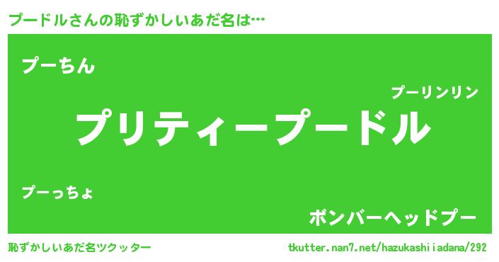 | 男性向けラノベタイトル風あだ名 | 『この素晴らしい世界にプードルを!』 |