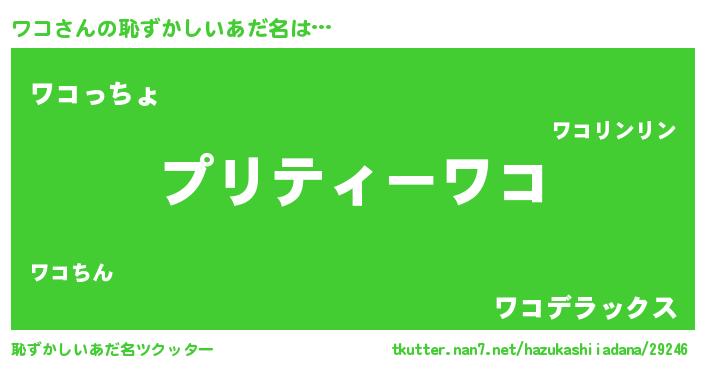 | 意味不明あだ名 | 『ペロリンワコ』『ワコフォーエバー』 |