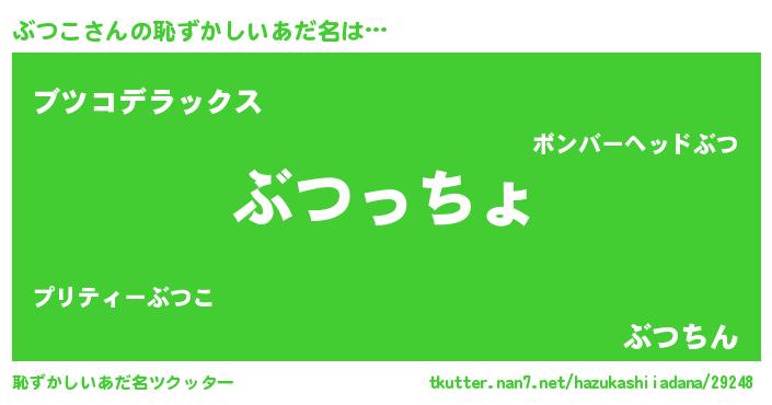 | ヘコむあだ名 | 『豆乳』『ぶつこ(笑)』『ぶつっ子』 |