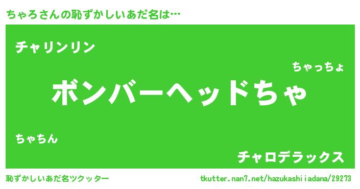 | ヘコむあだ名 | 『ちゃぷりん』『なまこ酢』 |