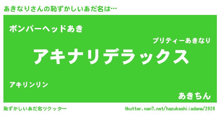 | ヘコむあだ名 | 『あきなり(遠い目)』『あきっふぃ~』 |