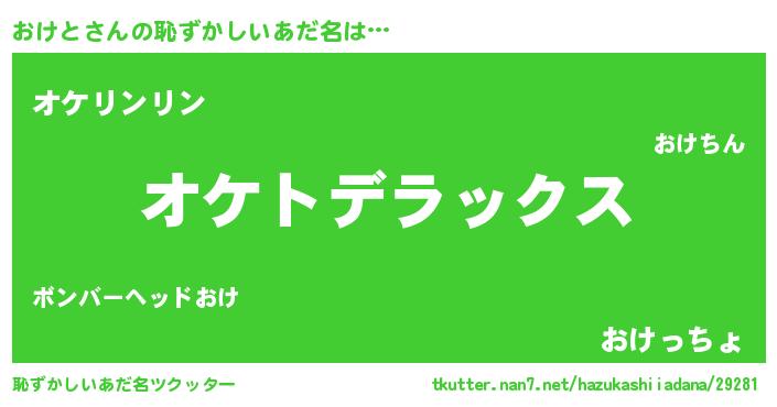 | ヘコむあだ名 | 『おけっちょ』『牛乳』『おけにゅー』 |