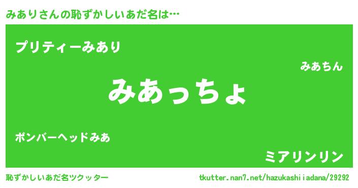 | 意味不明あだ名 | 『みありフォーエバー』『ペロリンみあり』 |