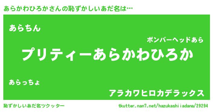 | 胡散臭い通販商品みたいなあだ名 | 『億万長者になれるブレスレット…その名も「あらかわひろか」』 |