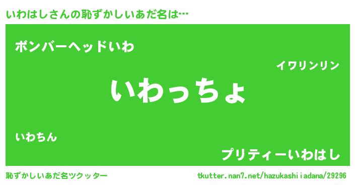 | ヘコむあだ名 | 『なまこ酢』『いわにゅー』『いわを』 |