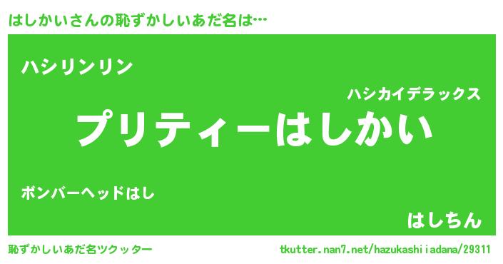 | ヘコむあだ名 | 『はしにー』『はし太郎』『なまこ酢』 |