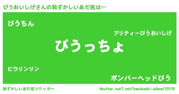 | 欧米人風あだ名 | 『びうおいしげクリステル』 |