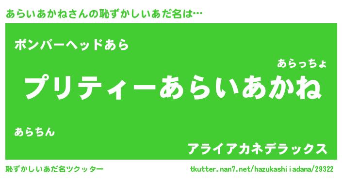 | ヒーロー風カッコイイあだ名 | 『スーパーアライアカネ』『仮面アラダー』 |